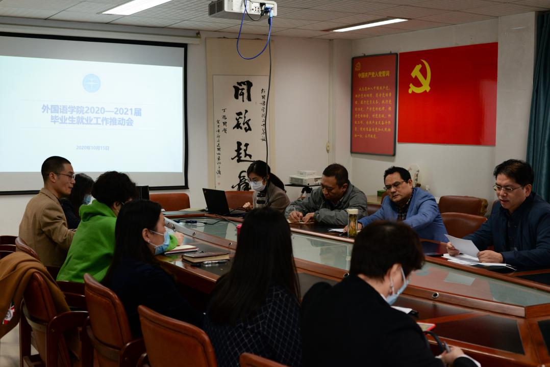 10月15日下午,sunbet申搏官方网站在北一楼会议室召开2020-2021届毕业生就业工作推进会,sunbet申搏官方网站党政联席会成员、各三级单位主要负责人、硕士毕业生导师代表、本科毕业班班主任、辅导员参与会议。sunbet申搏官方网站党委副书记胡文勤主持会议。