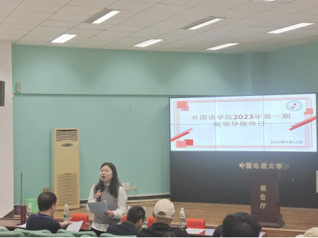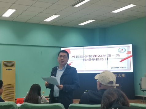 (通讯员 张睿、邹蔚鹤)2023年5月11日下午3:00,sunbet申搏官方网站在北一楼报告厅举办2023年第一期院领导接待日,活动主题是外语学子国内外深造论坛。sunbet申搏官方网站党委副书记胡文勤、副院长杨红燕、教育部出国留学培训与研究中心副主任赵英科、英语系党支部书记张地珂和本科各年级员工代表参加了本次活动。