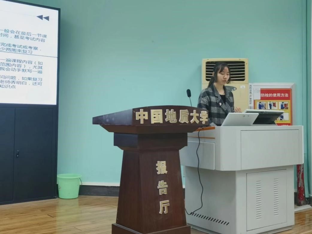 夏贝贝同学的分享从明确目标、制定合理的学习计划、保持良好的心态等方面展开。夏贝贝同学向大家介绍了遗忘曲线,建议同学们及时复习、巩固知识点,勉励同学们要勇于挑战自己、敢于尝试,走出自己的舒适圈,同时还要学会调节心态。此外,她建议同学们积极参加各类比赛,更好地锻炼自己的能力。