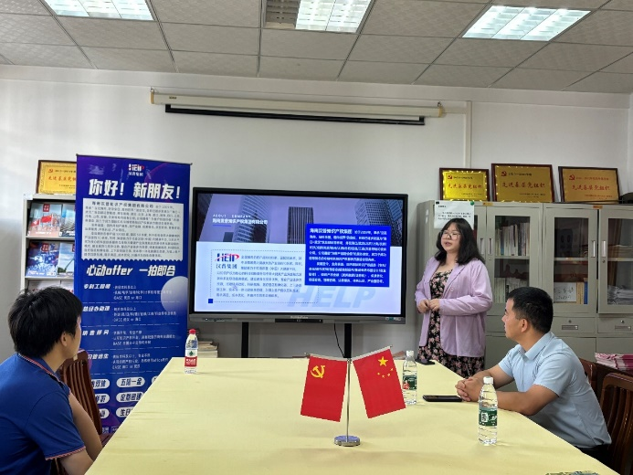 首先,招聘方王女士以轻松活泼的开场白向参会同学们表示欢迎,并开始了宣讲。她先是向同学们详细介绍了汉普知识产权集团,内容包括企业发展、公司分布、主要业务、服务对象、企业文化等等。