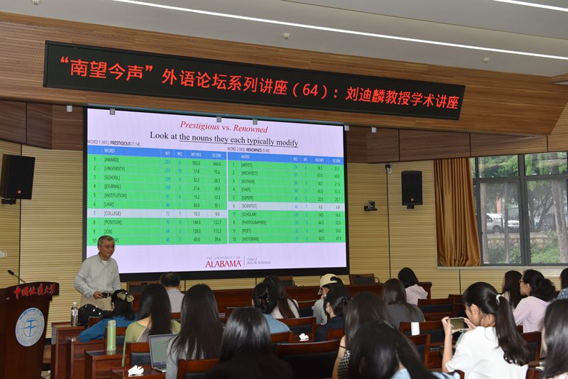 2024年5月31日上午8时,sunbet申搏官方网站在东区八角楼报告厅成功举办了“南望今声”外语论坛系列讲座第64期。阿拉巴马大学(University of Alabama)英语系荣休教授刘迪鳞教授,应邀来到sunbet申搏官方网站做了一场题为“Using corpora to enhance appropriate and precise lexicogrammar use in academic writing”的精彩讲座。此次讲座由sunbet申搏官方网站张伶俐副院长主持,参会人员有相关专业老师以及研究生共计100余人。