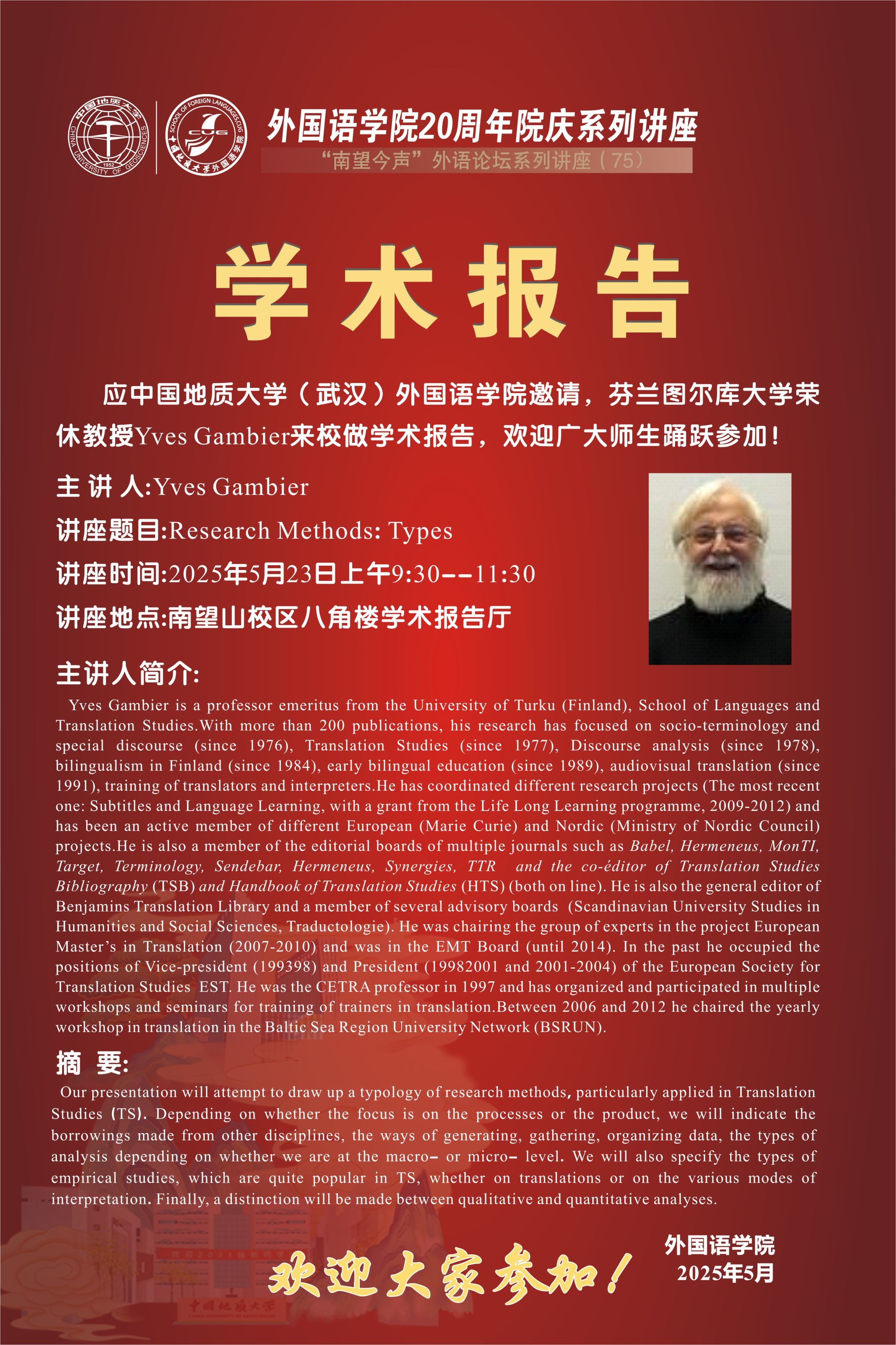 sunbet申搏官方网站二十周年院庆暨“南望今声”外语论坛系列讲座第75期启幕