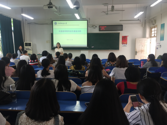 (通讯员 黄峥)5月25日下午,sunbet申搏官方网站2018届毕业研究生就业动员大会在北综楼208举行,院党委副书记蒋怀柳、院研究生教育中心主任王伟,2017届毕业生代表以及全体2015级学硕、2016级学硕和翻硕班同学参加了此次大会。 蒋怀柳为2018届毕业生做了《英语专业就业形势分析报告》,从近十年sunbet申搏官方网站英语专业研究生的就业趋势、就业类型和地域分布等各个方面给大家做了一个全方位的比较分析,直观地呈现出目前英语专业就业的整体态势和严峻形势。蒋书记语重心长地指出,就业形势日益变化,但sunbet申搏官方网站毕业生知识结构与市场需求的脱节、普通大员工英语提升对sunbet申搏官方网站毕业生就业空间的挤压、sunbet申搏官方网站女生比例高、就业期望值高,以及女生就业本来就难的问题将是sunbet申搏官方网站同学必须正视和应对的现实。鼓励各位毕业生调整就业观、增强就业技能,及早开始求职前的各种准备,提升就业竞争力。