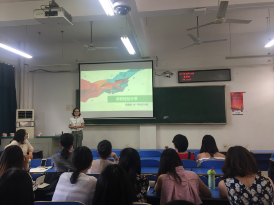 2017届毕业生代表高亚武、苟恩建和余新星分别跟大家一起分享了他们的求职心得。高亚武同学详细地介绍了英语专业任职分类、简历制作以及面试技巧等各个求职环节,并从自己的求职过程中总结了知己知彼、沉着冷静、自我总结的求职感悟;苟恩建同学以自己求职的经历为例,着重强调了要随时关注招聘信息,学会从多重渠道去获取信息,在确定好自己的职业目标后对准下药,坚定地为自己心仪职位做好准备,一举拿下;余新星同学则结合工作后再考研再重新求职的心路历程为例,从成功经验和失败教训两方面向大家重点分析了许多同学意属的公务员及高校职位的特点和要求,希望大家放宽眼界,多去尝试,才能发现最适合自己的职位。三位同学准备充分,讲解诚恳,悉心解答在座学弟学妹的各种求职疑惑。