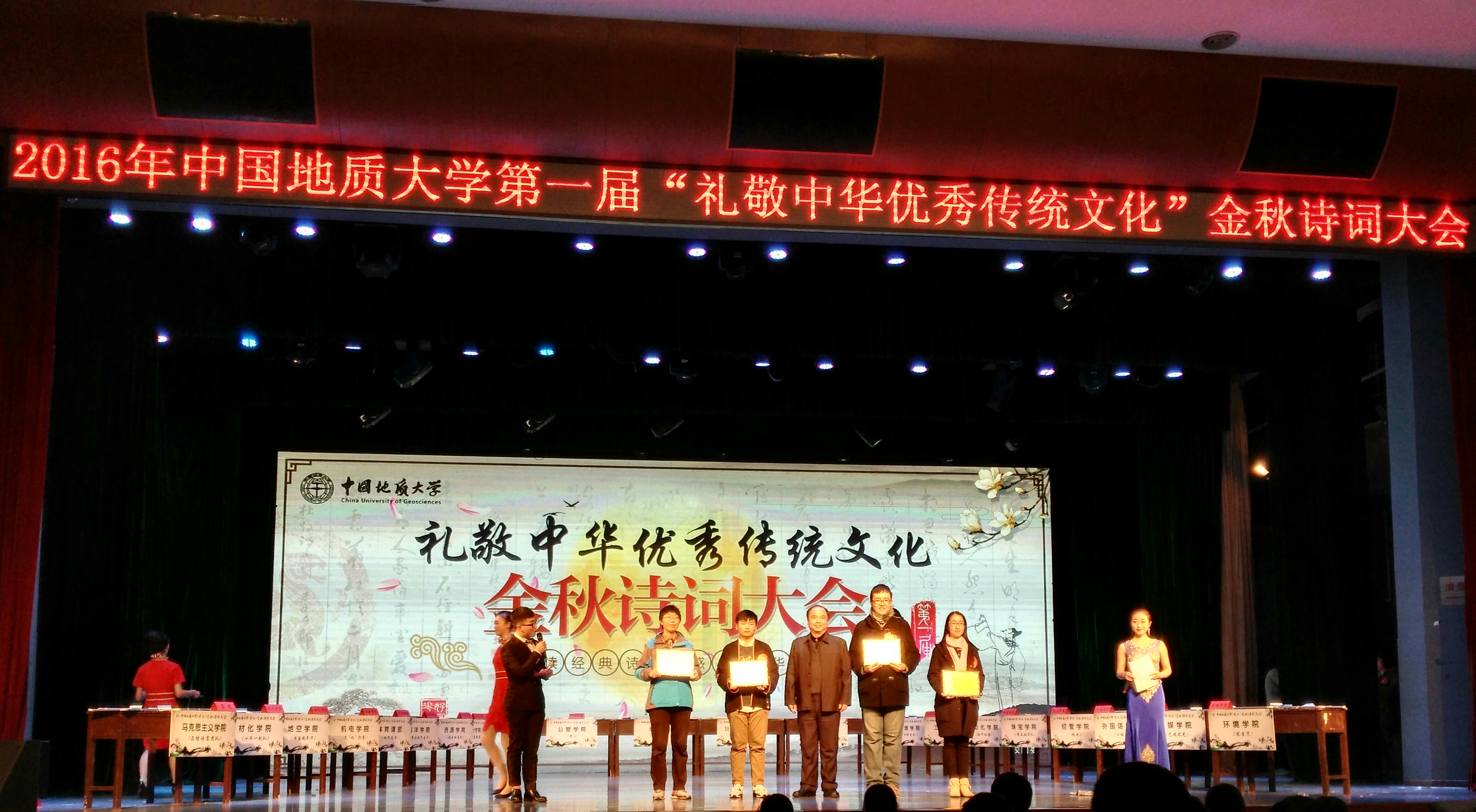 (通讯员 宁蒙)在11月25日,sunbet申搏官方网站(武汉)第一届“礼敬中华优秀传统文化”金秋诗词大会在弘毅堂举行,sunbet申搏官方网站研究生16级学硕班殷曼姝、本科生091134班何福麟、091142班胡金佩组成“江城子”队,代表sunbet申搏官方网站参加了本次比赛,并获得团体二等奖的优异成绩。