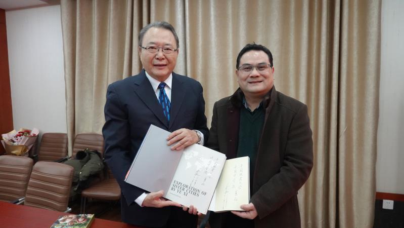 余熙老师向外语sunbet申搏官方网站和国际教育sunbet申搏官方网站分别赠送撰写的书籍。