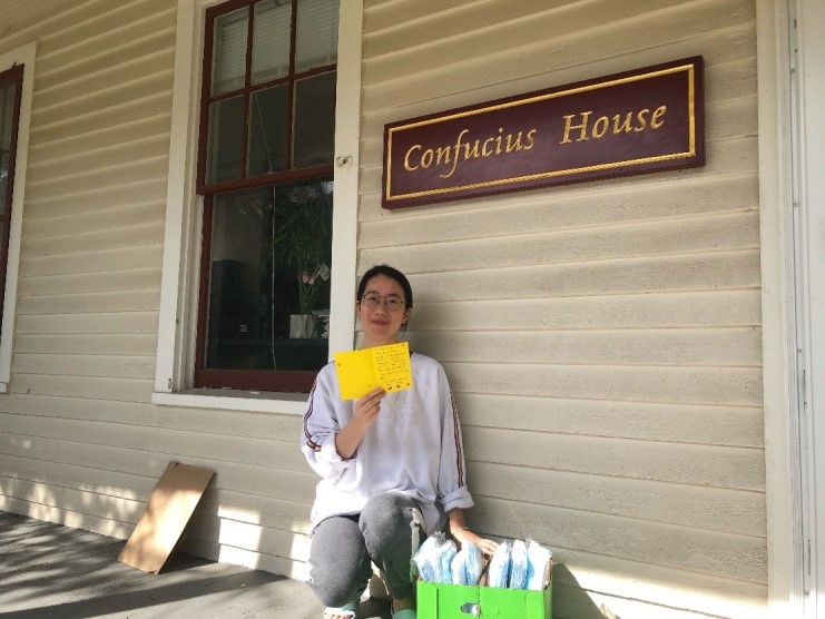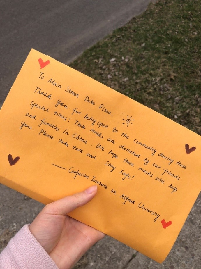 三月和四月,我们所居住的孔家变成了一个捐赠口罩的重要桥梁,我们通过邮件告诉学校还在工作的教职工和留员工,还有周边社区的居民们,如果非常需要口罩(由于工作性质,像消防队、社区医院、学校食堂等部门还在工作;有些留员工无法回国,也滞留在学校),可以邮件联系我们,我们会根据情况以及我们手头多余的口罩数量进行捐赠。我们把口罩用信封包起来在信封上写好名字,放在门口的信箱,通过邮件告诉他们取口罩的时间,这样就实现了零接触捐赠口罩。