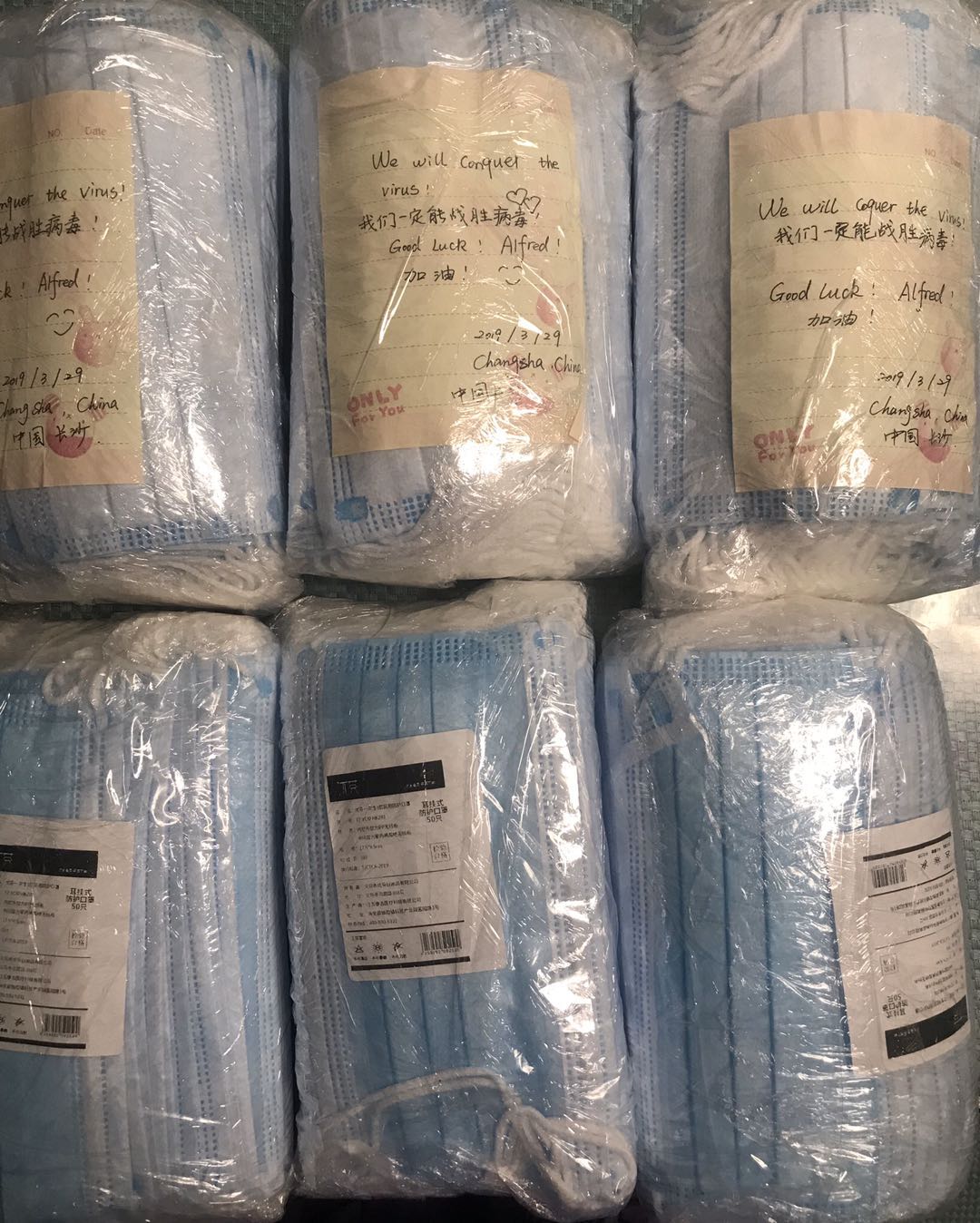 (图十 陆陆续续收到地大和国内亲友寄来的口罩。)