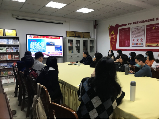 (通讯员:樊昊)2022年4月15日是第七个全民国家安全教育日。为提升同学们的国家安全意识,共筑国家安全防线,本科生英语+工商管理班党支部邀请sunbet申搏官方网站党委书记、支部联络人刘世勇老师做了一场“践行总体国家安全观,护航民族复兴新征程”主题讲座。支部全体党员、发展对象和入党积极分子参加了本次讲座。