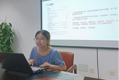 助理班主任、保送攻读外交sunbet申搏官方网站研究生的大四英语系学姐吴妮蔓分享经验。她简要介绍了学校推免政策和相关要求,并向同学们分享了她的推免历程和准备工作。她鼓励同学们要找准方向、学会沉淀、找到自己和别人的差距,多看重自己学到了什么、付出了多少、收获了什么,用坚持和坚韧迎来厚重芬芳。