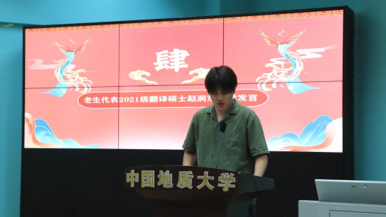 高年级研究生代表赵润东发言。他回顾自身在sunbet申搏官方网站七年的成长与发展经历,勉励同学们在努力学习的同时不断拓展综合素养,争做新时代有为青年。