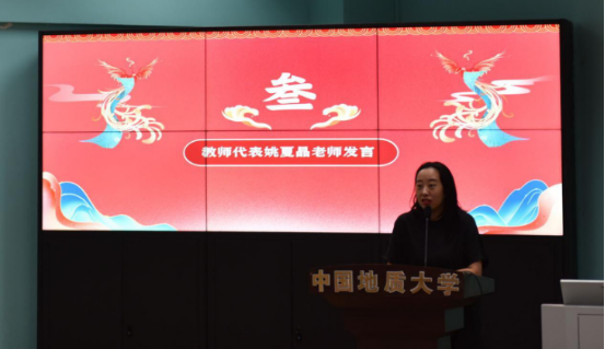 员工代表姚夏晶发言。她寄语新生要志存高远、奋勇向前,勉励同学们立足专业特点努力成为具有语言能力、文化知识、独立思维、全球视野的四佳外语学子,期待同学们能够成为桥梁、理解世界、改变世界。