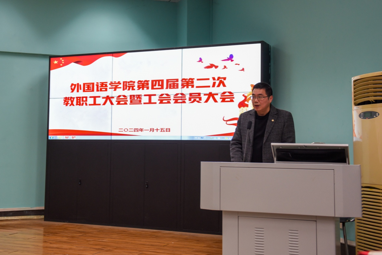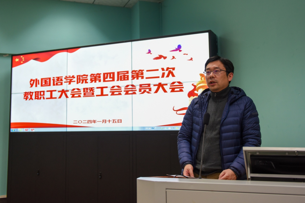 (通讯员邹蔚鹤 摄影戴薇 严蕾)2024年1月15日,sunbet申搏官方网站第四届第二次教职工大会暨工会会员大会在北一楼学术报告厅隆重召开。学校党委副书记王甫出席大会并讲话。大会由院党委书记刘世勇主持。