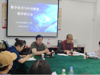 (通讯员:陶惟、石欢)为推动外语教育教学数字化研究,积极迎接教育部本科教育教学审核评估,4月25日下午2:30,大学英语二部全体员工在北一楼334教室召开了以“数字技术与外语教育”为主题的教学研讨会,会议由陶惟老师主持。此次研讨会旨在探讨大学英语数字化教学与研究的经验与方法,与会老师积极参与,共同分享见解。