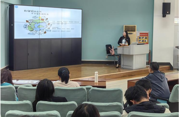 最后,周老师通过一个短片,生动形象地展示了抑郁症的表现、非典型抑郁的分类和抑郁症的干预措施。她指出,面对有心理健康问题的员工,老师应保持冷静,耐心倾听员工的倾诉,认可员工表露出来的感受等。周老师通过数据展示强调,假期是员工心理问题爆发的高发期,班主任老师应根据实际情况,通过召开班会、单独聊天等方式及时进行干预。