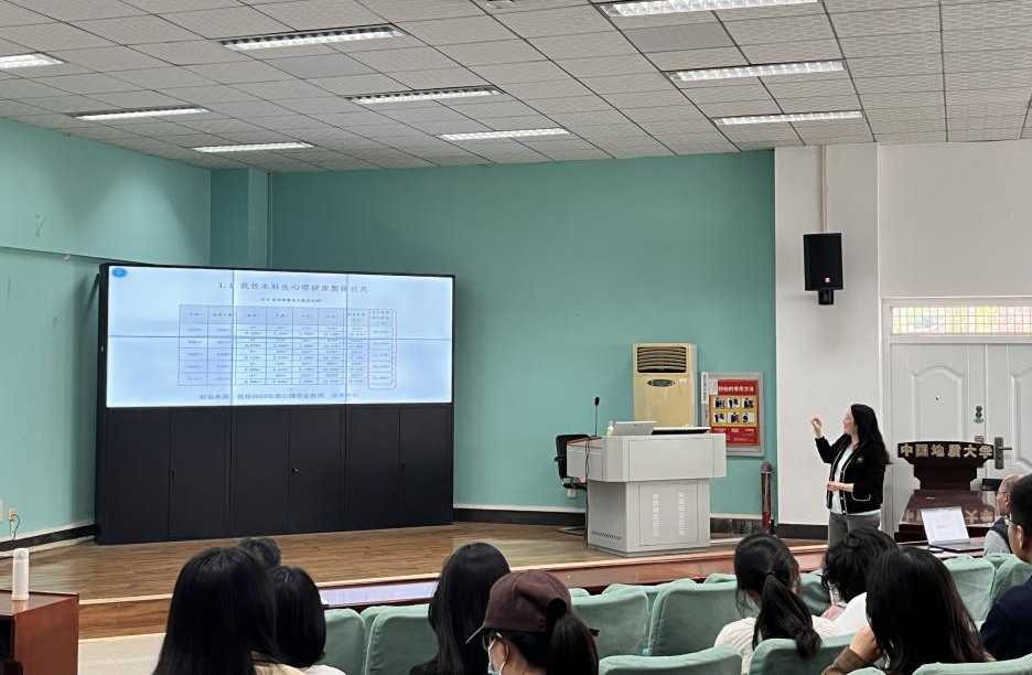 讲座一开始,周老师就运用本科生的有关数据,展示了近几年大员工的心理问题咨询数量和我校员工心理健康的整体状况。周老师表示,近几年员工心理问题咨询量逐年增多,2023年是2019年的1.43倍,员工心理健康状况整体下降的趋势表明,早期心理问题预防与干预工作迫在眉睫。