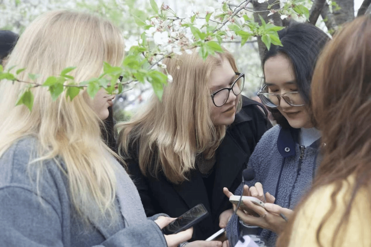 紫荆花下,欢声笑语不断,这一温馨场景,是 “讲好中国故事” 的鲜活缩影。在“寻芳记”环节中,中国员工巧妙引用 “投我以木桃,报之以琼瑶”,阐释海棠花的寓意,于无形中传递中华文化 “感恩与回馈” 的传统美德。现场还增设 “红色花语” 解读环节,赋予花卉独特的精神内涵:樱花象征 “希望与复兴”,梨花寓意 “纯洁与奉献”,将花卉自然之美与红色文化紧密融合,让青年学子在赏花过程中,深刻领略红色文化的魅力与生命力,促使红色文化在新时代绽放新的光芒。