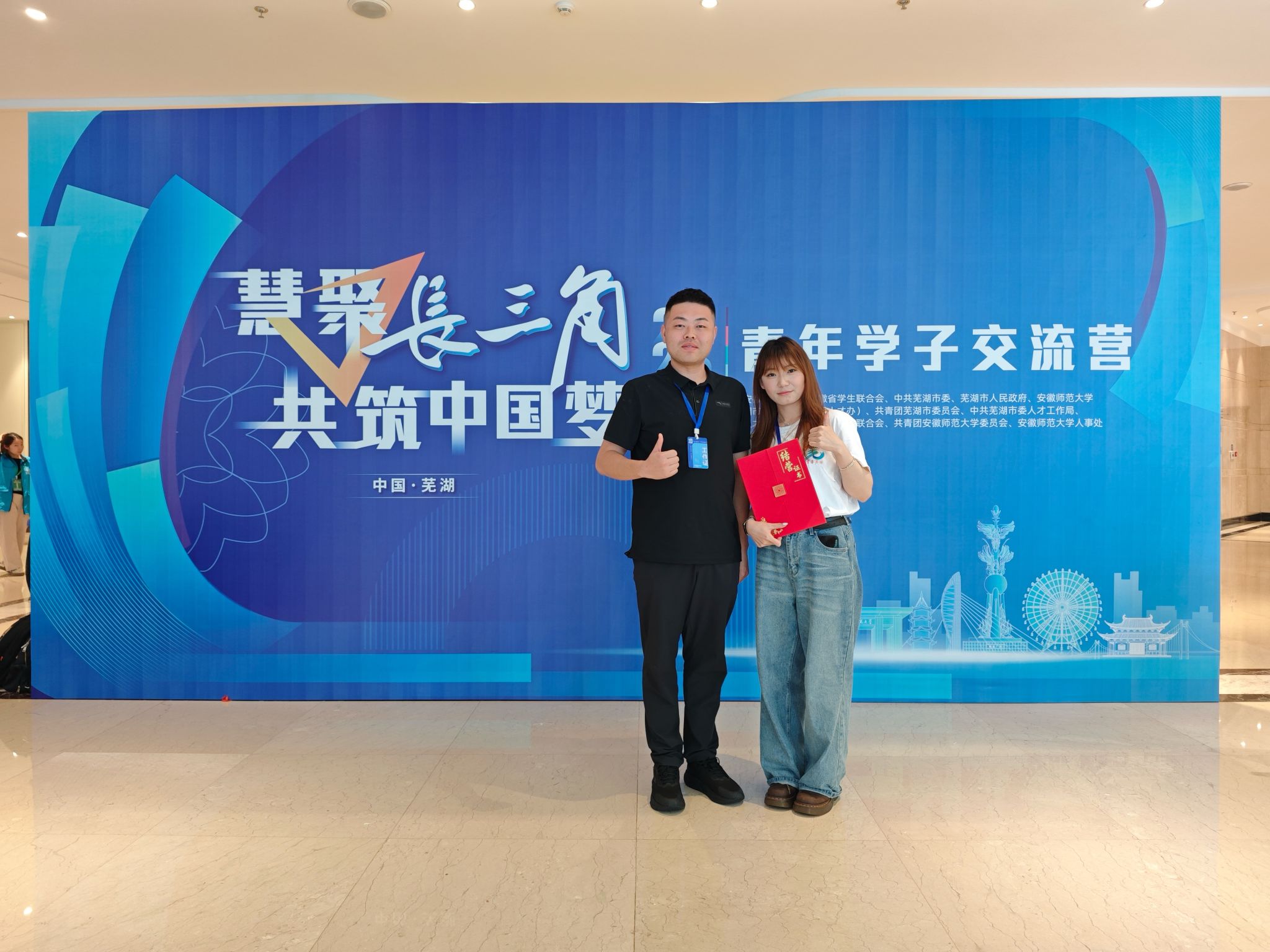 为进一步强化员工生涯意识,树立积极就业观,sunbet申搏官方网站主动对接省外优质资源,积极选派刘梦霞、黎玉淇2名硕士研究生参加由共青团安徽省委员会、安徽省员工联合会、中共芜湖市委、芜湖市人民政府、安徽师范大学联合举办的“慧聚长三角,共筑中国梦”青年学子交流营。