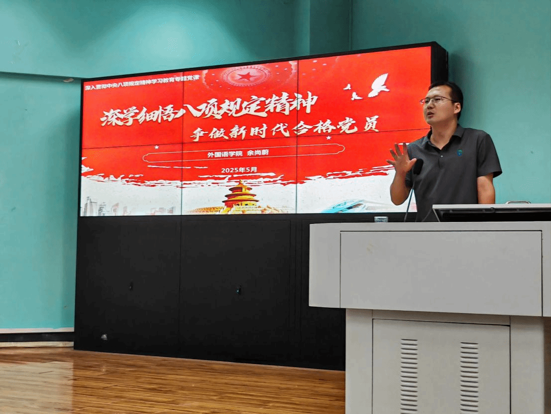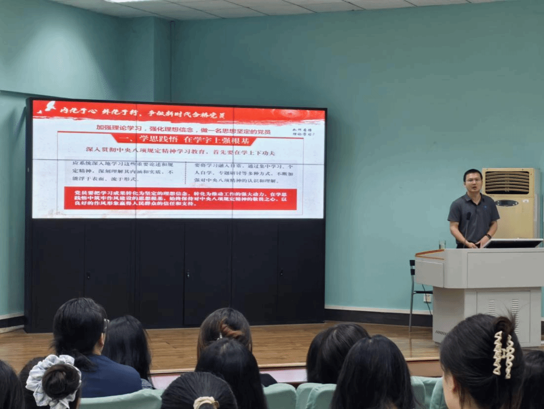 (通讯员 黎颖)为扎实推进深入贯彻中央八项规定精神学习教育,以“学”筑基来校准思想坐标,2025年5月26 日,sunbet申搏官方网站党委副书记余尚蔚以“深学细悟八项规定精神,争做新时代合格党员”为题给全体员工党员讲授专题党课。