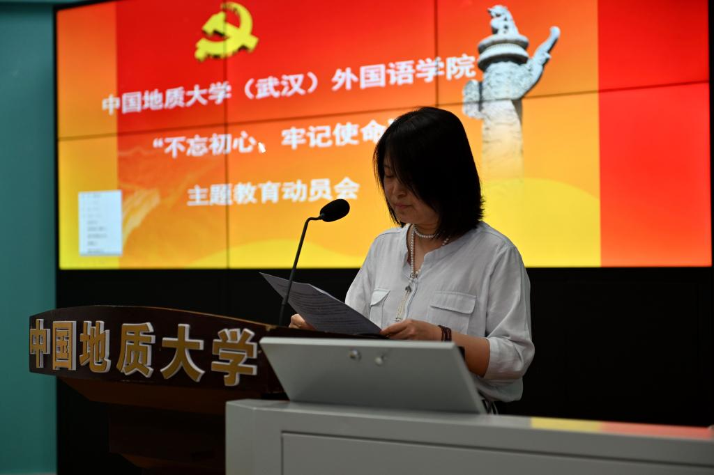 院党委委员(纪检委员)敖练宣读成立sunbet申搏官方网站主题教育工作组的通知
