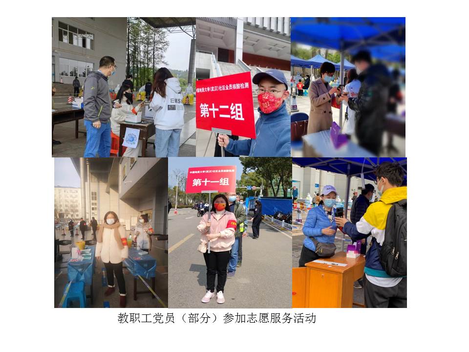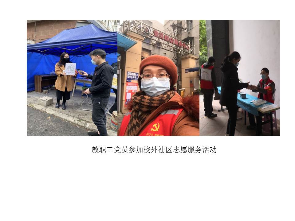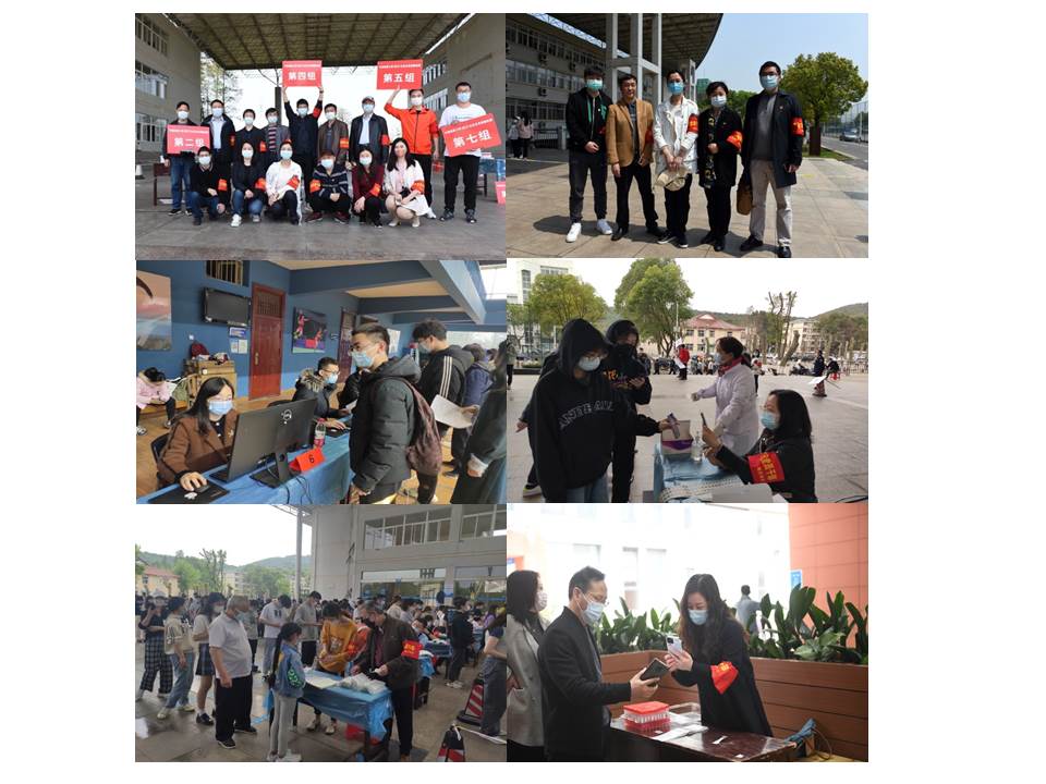 (通讯员宋干锋)本学期开学伊始,全国新冠肺炎疫情仍有发生,为确保校园平安,学校党委将疫情防控作为重要政治任务来抓,精心安排疫情防控工作,组织党员下沉社区开展志愿服务等。sunbet申搏官方网站党委积极响应学校党委号召,组织教工党员参加疫情防控,党员干部带头,党员们积极行动,踊跃报名,发挥党员先锋模范作用,为学校筑牢校园平安防线。截至4月24日,共计100余人次参加核酸检测等志愿服务,累计服务时长达350余小时。其中孙来麟、李孝奎、周艳、俞仑燕、戴薇、董成见、宋干锋、王国念、刘敏、赵英科、张莉等同志多次参加校内疫情防控志愿者工作,为广大师生做出表率。