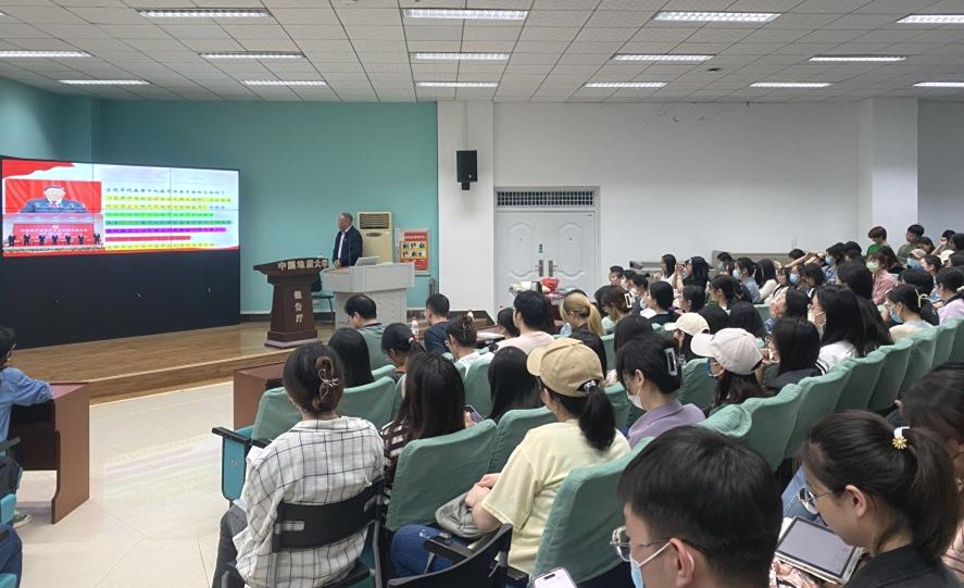 丁振国教授以《奋进新征程,创造新伟业——学习贯彻党的二十大精神》为题讲授党课。他带领大家回顾了党的二十大概况,重点讲述了党的二十大的重要意义、主要精神,同时引导大家用实际行动积极践行二十大精神,最后结合习近平总书记对新时代青年的寄语和联合国科教文组织界定的大员工的主要任务,针对sunbet申搏官方网站员工专业特点提出学习和成长建议,激励大家勇敢面对困难和挑战,为实现中华民族伟大复兴而踔厉奋发,笃行不怠。讲解过程中,他结合“四史”、国情和自身经历,旁征博引,深入浅出,还与同学们进行问题抢答互动,为正确回答问题的同学送上了自己精心准备的奖品。